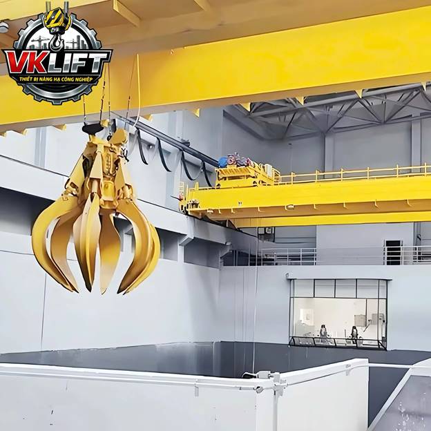 Nhờ cấu tạo chuyên dụng, cầu trục gầu ngoạm có khả năng vận hành liên tục trong môi trường bụi, ẩm, vật liệu rời hoặc điều kiện công nghiệp nặng.