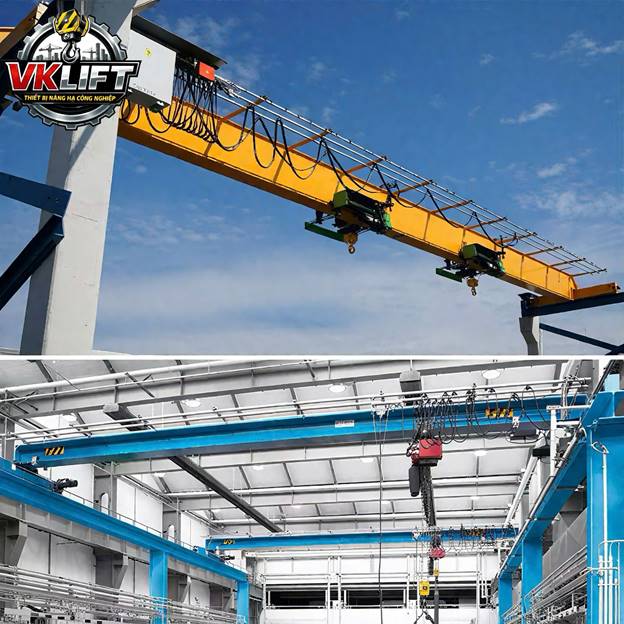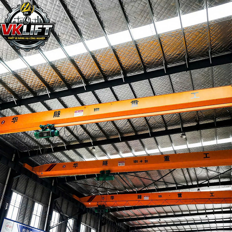 Ví dụ: một xưởng sản xuất kết cấu thép có khẩu độ 25 m, chiều cao mái 12 m, cần xử lý các khung thép nặng ~ 18 tấn thì cầu trục dầm đơn 20 tấn là lựa chọn phù hợp, vừa đảm bảo khả năng vận hành vừa tối ưu chi phí so với dầm đôi.